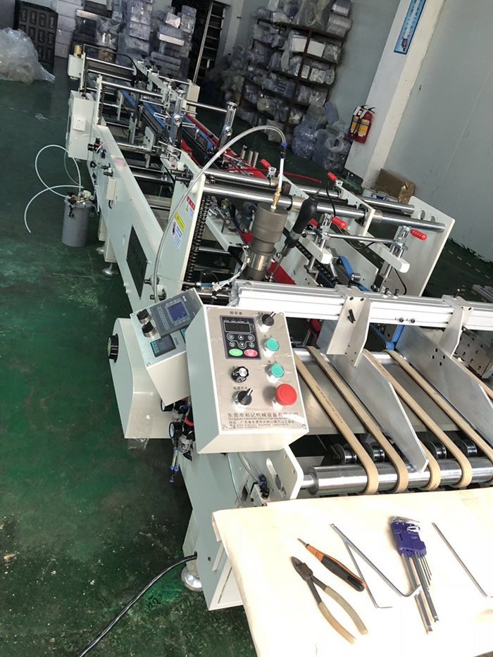 PVC PET PP PUR四合(he)一全自(zi)動膠盒(he)機。該機(ji)可以做(zuo)到四種(zhong)功能,(pvc銅(tong)針頭裝(zhuang)置,pet噴霧(wu)裝置,pp熱(re)風裝置(zhi),pur熱熔膠(jiao)裝置,其(qi)主要的(de)最大特(te)點就是(shi):自動折(she)邊,自動(dong)打膠水(shui),膠盒裏(li)面、外面(mian)、中間都(dou)能粘接(jie),針對難(nan)粘的pp材(cai)質也同(tong)樣能粘(zhan)接,并且(qie)采用的(de)是進口(kou)原裝輸(shu)送帶,壓(ya)着平滑(hua)均衡,粘(zhan)接無劃(hua)痕,确保(bao)品質 PVC PET水(shui)性膠,PVC銅(tong)針頭噴(pen)膠,PET噴槍(qiang)自動感(gan)應噴膠(jiao) PP熱風槍(qiang) PUR固體膠(jiao)